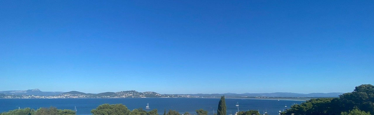 Offrant un panorama exceptionnel à 180°, la vue s’étire majestueusement de Toulon jusqu’à la plage de l’Almanarre, embrassant l’immensité de la baie.